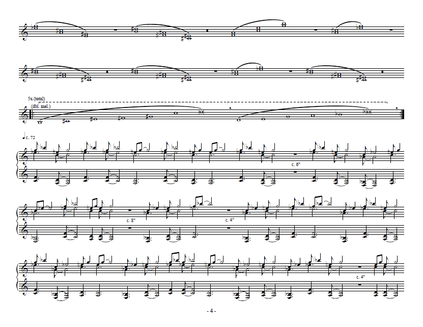 The sounds of the toy piano and melodica might be considered not quite as refined as the sounds I have generally written for over the years. With both of these instruments there is a certain “you get what you get” quality that is both challenging and engaging. Most importantly, I like these sounds, and wanted to explore them in combination. Essentially an extended work for solo toy piano, the melodica is sometimes called upon to join in, at unison. This rejuvenates the sound—and the points when this happens, when it does not, and how long it lasts provide a certain contour to what would otherwise be a fairly sonically undifferentiated expanse.